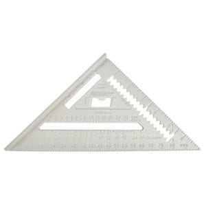 The IRWIN Tools 1794463 Rafter Square is made from aluminum and provides a weather-proof and rust-proof tool for your toolbox. Available in a 7-inch size, this speed square offers deep stampings to enable numerals to be consistently visible, providing yellow markings which are clear and allows an accurate and precise cutting.
